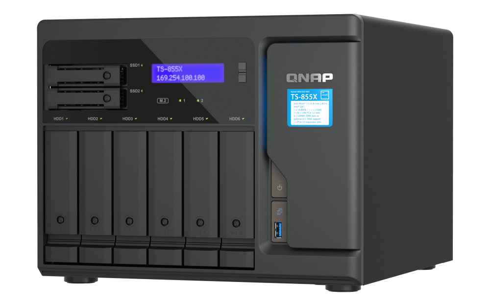 Tajpej, Tajvan, 2023. június 26. – A QNAP® Systems, Inc., a számítási-, hálózatépítési- és tárolási megoldások vezető innovátora ma bejelentette az új TS-855X NAS-t, amely hat 3,5 hüvelykes HDD-vel és két 2,5 hüvelykes SSD-vel kínál hibrid tárolóhelyet. Az Intel® QAT és SR-IOV technológiával rendelkező Intel® Atom® C5125 2,8 GHz-es 8 magos processzorral a TS-855X akár 128 GB DDR4-memóriát támogat, és 10 GbE/2,5 GbE hálózati portokkal érkezik. Tárolókapacitása rugalmasan bővíthető, és támogatja a 25 GbE hálózati portokat egy kompatibilis PCIe-kártya telepítésével. Az all-inclusive üzleti biztonsági mentéssel, virtualizációval és kiberbiztonsági alkalmazásokkal a KKV-k nagy teljesítményű, nagy sebességű és nagy mértékben bővíthető tárolási- és virtualizációs környezetet valósíthatnak meg a legalacsonyabb teljes tulajdonlási költséggel.