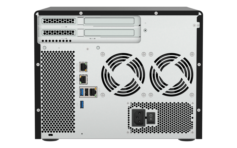 A TS-855X négy UDIMM DDR4-foglalattal rendelkezik (8 GB előtelepítve), amelyek 128 GB-ra bővíthetők a fokozott multitasking és a nagyobb munkaterhelések támogatásához. A hibajavító kódolást (ECC) alkalmazó memóriamodulok szintén támogatottak, hogy szerverszintű teljesítményt és megbízhatóságot biztosítsanak az üzleti szempontból elengedhetetlen vállalati informatikai környezeteknek. Az egyportos 10 GbE csatlakoztathatóság mellett a két 2,5 GbE RJ45 (2,5 G/1 G) port is kombinálható, hogy lehetővé tegye a többcsatornás SMB használatát az akár 5 Gbps átviteli sebesség eléréséhez. A két beépített M.2 PCIe NVMe-foglalat támogatja az SSD-gyorsítótárazást vagy a Qtier™ automatikus rétegzett tárolást (elérhető QTS-ben) a NAS teljesítményének további fokozásáért. A két PCIe Gen 3 x4 foglalat lehetővé teszi a felhasználóknak a 10 GbE/25 GbE hálózati kártyák telepítését, valamint az SR-IOV engedélyezését a jobb I/O-átvitel érdekében. A TS-855X VMware® vSphere és Microsoft® Hyper-V tanúsítvánnyal rendelkezik a virtualizációs tároláshoz. A vállalkozások hatalmas tárolókapacitást érhetnek el a QNAP JBOD-bővítőegységek TS-855X-hez történő rugalmas csatlakoztatásával, hogy megfeleljenek a hosszú távú tárolási és archiválási követelményeknek, maximális megtérülés mellett.