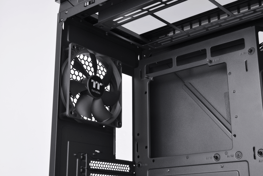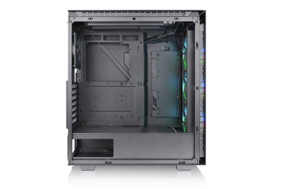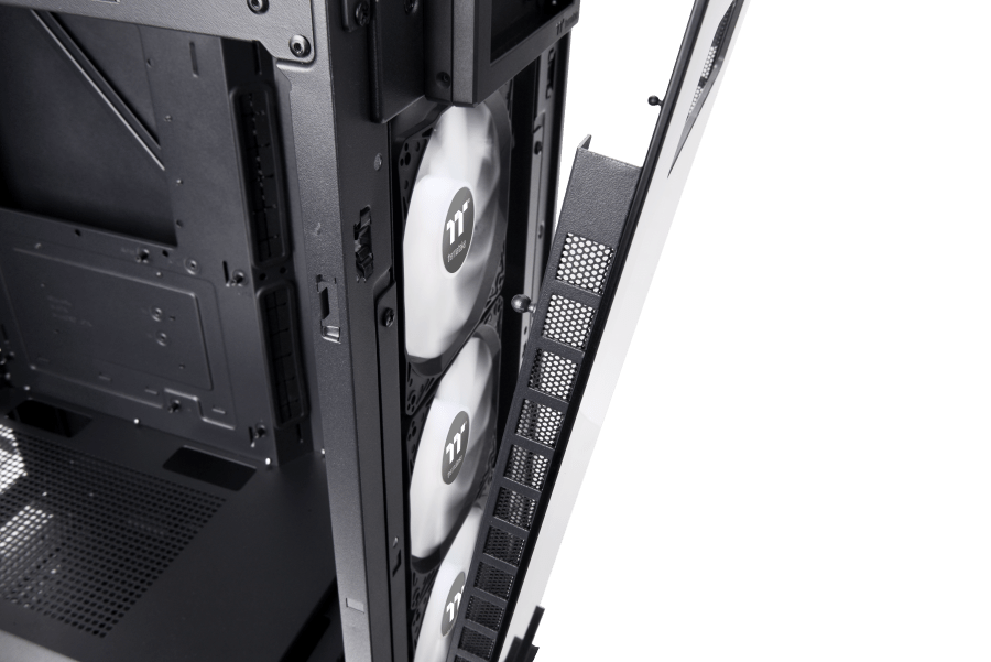 A három beépített 120 mm-es 5 V-os ARGB-ventilátoron kívül maga a toronyház kialakítása is zökkenőmentes légáramlást nyújt, amely rendkívül hatékonnyá teszi a teljes hűtési teljesítményt. Például a gépház szemközti oldalán található edzett üveg mögötti szellőzőrések is optimális légáramlást biztosítanak. További szellőzőnyílások találhatók a jobb oldali, acélból készült panelen és a toronyház hátsó részén is. Szintén figyelemre méltó, hogy a jobb oldali panelt speciális, szimmetrikus háromszög részegységek alkotják, ami megtartja a Divider sorozat egyedi jellemzőit, és jobb légáramlást biztosít a panelen lévő szellőzőnyílásokon keresztül.