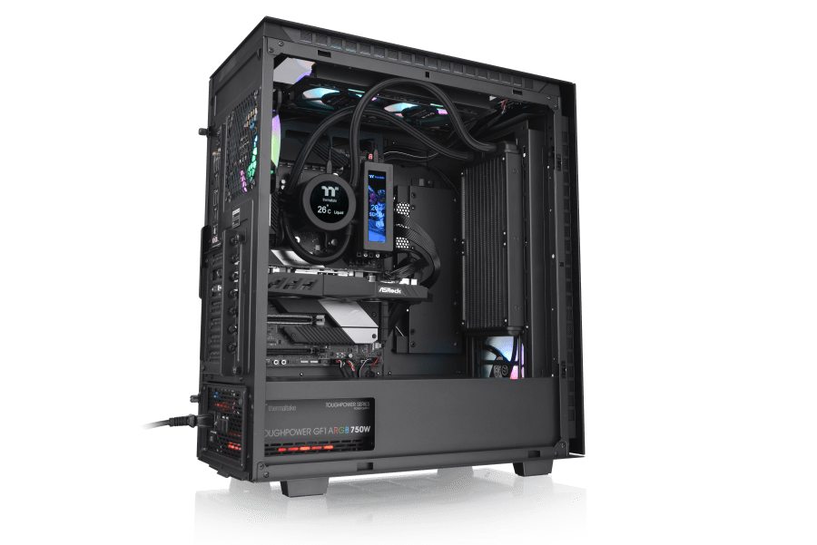 A Divider sorozat legújabb változataként a Divider 550 TG Ultra ATX közepes méretű toronyház figyelemre méltó tulajdonsága az előlap tetején található LCD-kijelző, amely lehetőséget biztosít az egyedi képek és GIF-ek, valamint a számítógépes információk – mint például a CPU valós idejű hőmérséklete vagy a RAM aktuális frekvenciája – megjelenítésére. A TT RGB PLUS 2.0 támogatású számítógépház több személyre szabható opcióval rendelkezik, hogy a felhasználók ennek segítségével mutathassák meg egyedi személyiségüket.