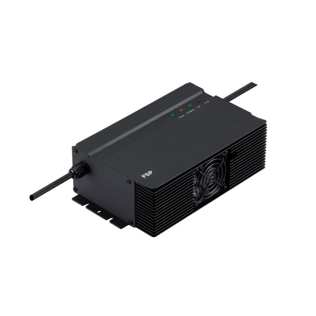 • Az FSP246-13S4A5C18 egy programozható töltő, amely támogatja az 50,4 és 58,8 V közötti töltési feszültséget. Közepes méretű és biztonsági tanúsítvánnyal is rendelkezik. Ugyan belső ventilátora nincs, számos területen alkalmazható, például az olyan könnyű elektromos járművek töltésénél, mint az elektromos kerékpárok és az e-robogók. Többszintes védelemmel látták el, valamint több mint 90%-os hatékonyságot kínál.