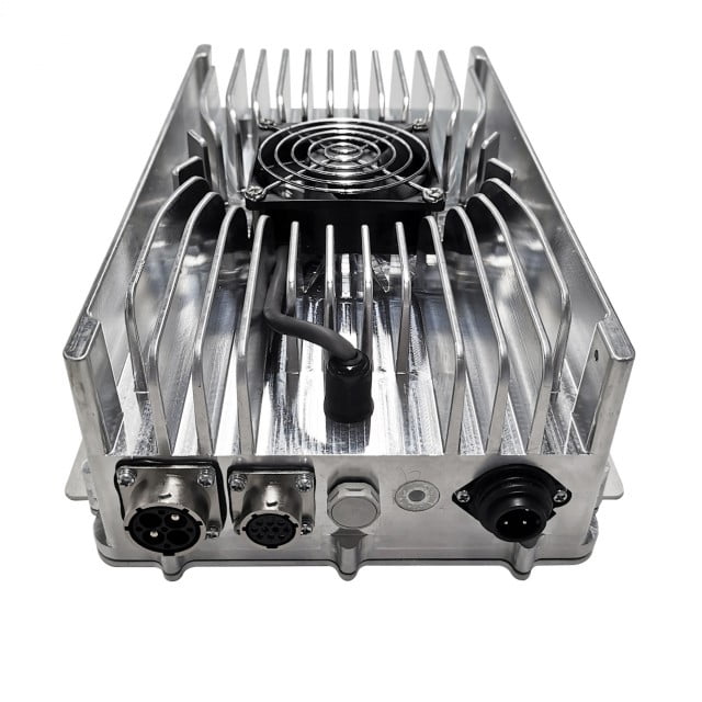• Az FSP1100-1UAC01 akkor jelent remek választást, ha olyan akkumulátortöltőt keresel, amely programozható kialakítással és állítható töltési görbével rendelkezik. Felhasználási területei közé tartozik az elektromos targoncák, az automata emelő robotkarok és az elektromos szállítási eszközök töltése. Ez egy intelligens autós töltő fém borítással, valamint egy IP67 védelemmel ellátott külső ventilátorral. A masszív kialakításának köszönhetően a teljes megoldás víz- és porálló. Ennél a megoldásnál a felhasználók személyre szabhatják az akkumulátortöltő vezetékeit és a csatlakozókat is.