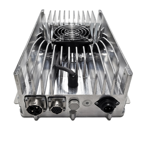Ez a töltő 202 x 132 x 69 mm-es mérettel és mindössze 2,2 kg-os tömeggel érkezik. A 600 W-os beépített töltő kompakt, könnyű, és nagy hatékonyságú kialakítással büszkélkedhet – mindezt 58,8 V-os kimeneti feszültséggel és 10,0 A-es kimeneti árammal kiegészítve. Az IP65-os besorolású, zárt kialakításnak és a hőelvezetést biztosító vízálló ventilátornak köszönhetően ez a töltő ipari alkalmazásokhoz vagy szennyeződésekre érzékeny környezetekben is használható. Egy beépített, elkülönített CANBus kommunikációs interfészt használ, vezetékekkel, terminálokkal és töltési görbékkel, amelyek egyaránt megtervezhetők és testreszabhatók az ügyfelek igényei alapján.