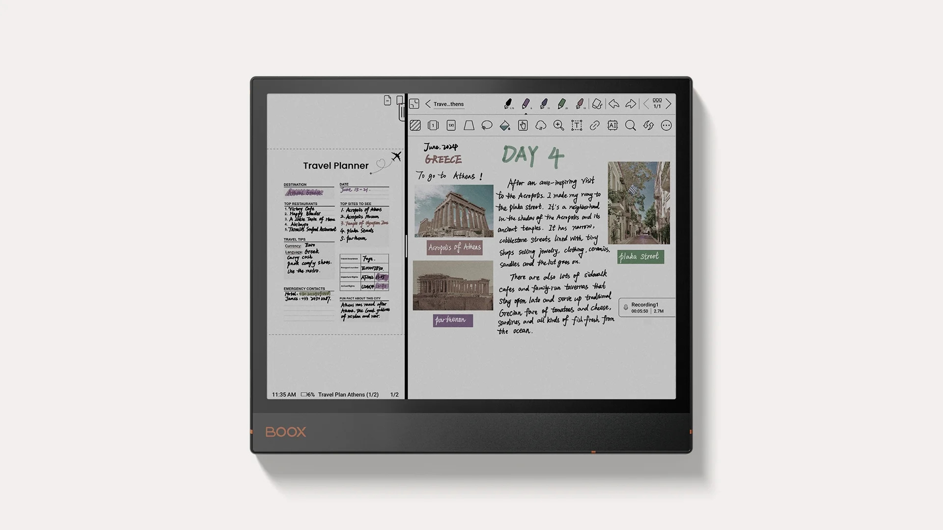 A BOOX Note Air3 C sokoldalú színes ePaper tabletként egy ideális társ a digitális utazási naplóíráshoz. Nézzük meg, hogyan segíthet a Note Air3 C utazásod megtervezésében, az élmények dokumentálásában, a történetek még élvezetesebb és hatékonyabb rendszerezésében, valamint megosztásában!
