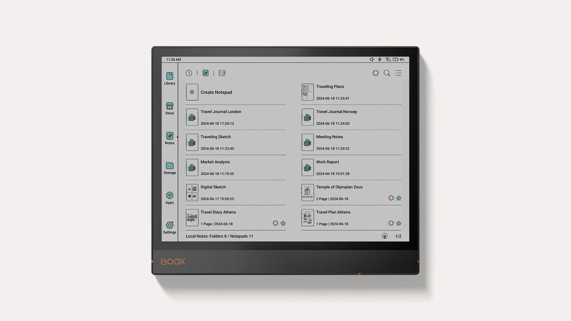 Az utazási napló nem csupán egy feljegyzés arról, hogy hol jártál, hanem arról is tanúskodik, hogyan látod a világot. A BOOX Note Air3 C-vel az utazási naplóírás gyakorlata tovább bővül. Erőteljes ePaper notebookként, ami ötvözi a digitális technológiát és a funkcionalitást a kézírásos naplózás hagyományaival, lehetővé teszi, hogy könnyen rögzítsd, rendszerezd és megoszd utazási történeteidet.