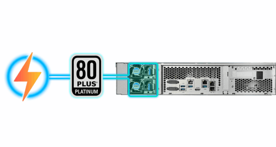 A LOCKERSTOR 12R Pro megbízhatóságának egyik kulcseleme a kettős redundáns tápegységrendszer. A két 550W-os, 80 PLUS Platinum tanúsítvánnyal rendelkező tápegység nemcsak kiváló energiahatékonyságot biztosít (50%-os terhelésnél 94%-os hatásfok), hanem teljes redundanciát is nyújt. Ha az egyik tápegység meghibásodik, a másik azonnal átveszi a teljes rendszer ellátását, így a NAS működése nem szakad meg, és a hibás egység cseréje akár működés közben is elvégezhető.